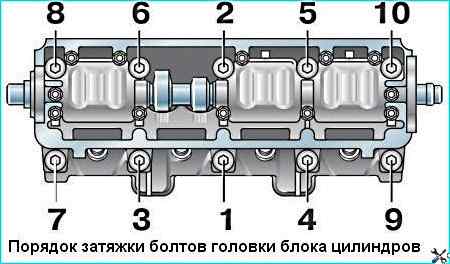 Шестигранником на 10 отворачиваем десять болтов крепления головки блока