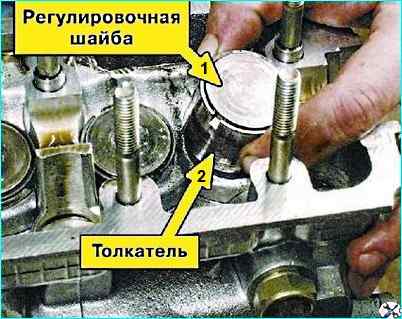 Вынув очередной толкатель, промаркируйте его и регулировочную шайбу порядковым номером, чтобы при сборке установить их на свое место.