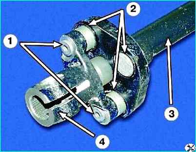 - а) если резиновые втулки муфты потрескались, расслоились или потеряли упругость;