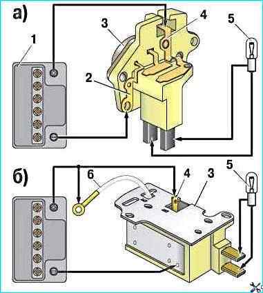 - б) схема проверки регулятора напряжения выпуска после 1996 г.