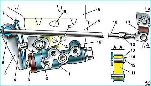 Регулятор давления 1 (рис. 1) крепится к кронштейну 9 двумя болтами 2 и 16.