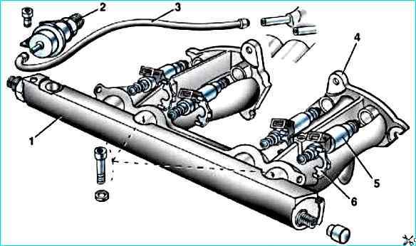 Снимите ресивер 4 ( рис. 2) с прокладкой 3 и кронштейном топливопроводов, отвернув гайку