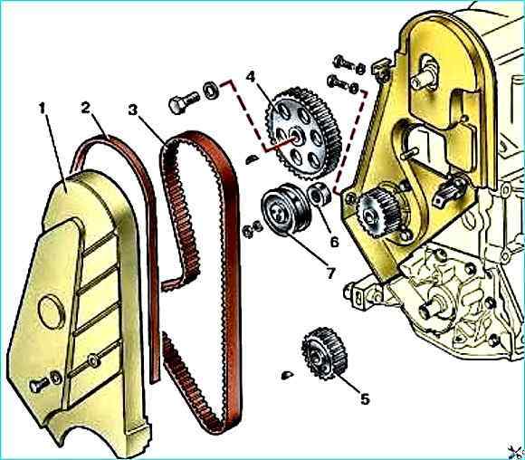 Снимите переднюю крышку 1 ( рис. 6) зубчатого ремня.