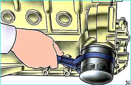 Приспособлением А. 60312 ( рис.8) снимите масляный фильтр с прокладкой.