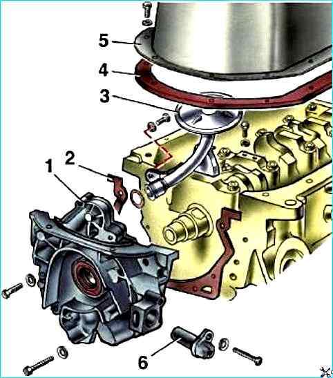 Переверните двигатель картером вверх и снимите масляный картер 5 ( рис.9 ) с прокладкой 4.