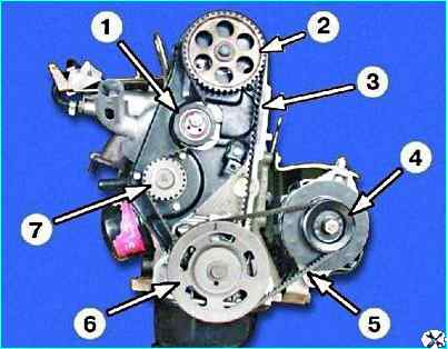 Ослабьте болт крепления шкива распределительного вала, удерживая его от проворачивания, для чего уприте отвертку в шпильку крепления задней крышки.