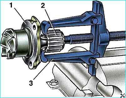 - - спрессуйте съемником 3 (рис 2). закрепленным в тисках, шкив 2
