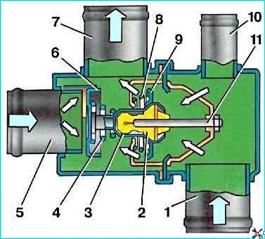 При температуре (87±2) °С основной клапан термостата должен начать открываться. Если этого не происходит, замените термостат
