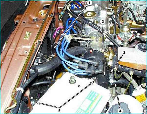 Отсоедините три шланга от корпуса термостата