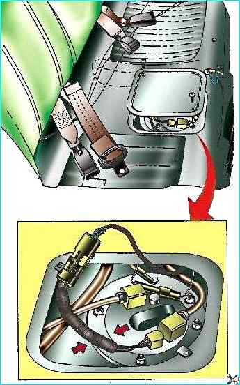 Для доступа к электрическому разъему насоса под задним сиденьем в днище автомобиля имеется лючок.