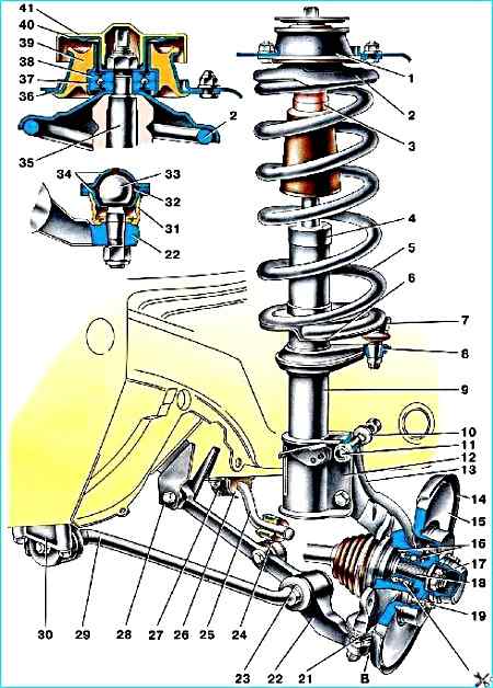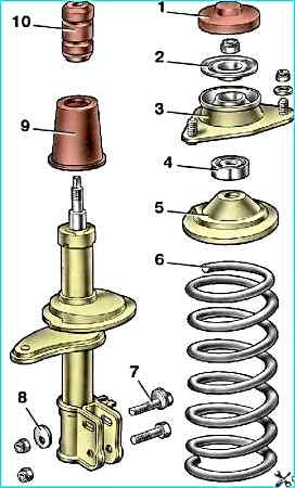 Сборку стойки передней подвески проводите в последовательности, обратной разборке с учетом следующего: