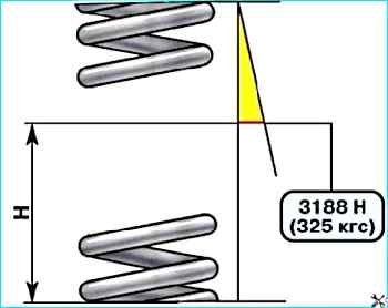 Для проверки пружины трехкратно прожмите ее до соприкосновения витков. Затем приложите к пружине нагрузку 3188 Н (325 кгс).