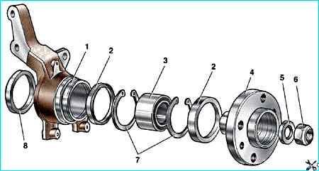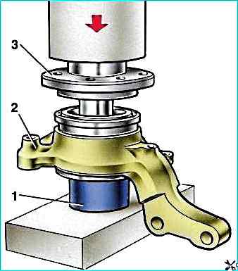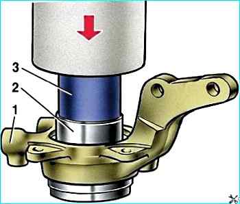 – установите наружное стопорное кольцо 7 (см. рис.2) в поворотный кулак 1 и запрессуйте подшипник 3.