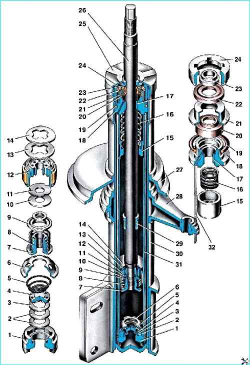 - – сальник и уплотнительное кольцо корпуса стойки при ремонте рекомендуется заменять новыми;