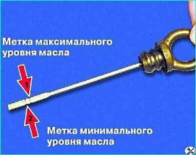 Нижняя метка обозначает минимально допустимый уровень масла.