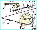 Снимите защитные колпачки 10 (рис. 1), затем выпрессуйте из корпуса цилиндра поршни 1 в сборе с деталями автоматического регулирования зазора между тормозными колодками и барабаном