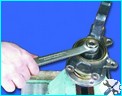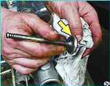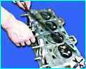 Затем положите головку набок и залейте керосин в тот канал, который закрыт клапаном