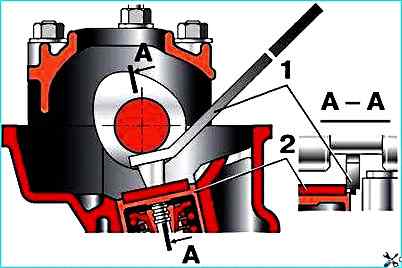 Разворачиваем толкатель так, чтобы прорезь в его верхней части была обращена вперед (по ходу автомобиля).