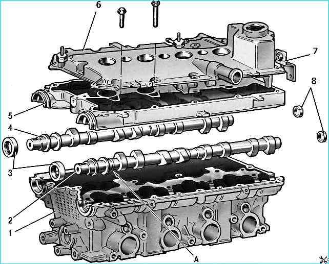 Демонтируем корпус подшипников распределительных валов, снимаем распределительные валы и вынимаем гидротолкатели (см. Замена гидротолкателей клапанов двигателя ВАЗ-2112)