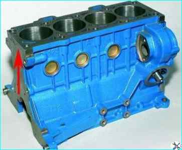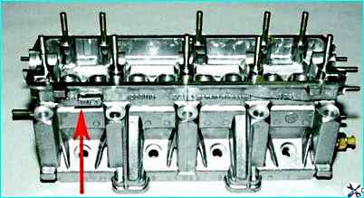 Отличить головку блока цилиндров двигателя ВАЗ-21114 можно по номеру "11183" на приливе (показан стрелкой)