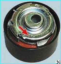 Если при проворачивании подшипника чувствуется заедание, осевой люфт или заметны следы вытекания смазки из подшипника, замените натяжной ролик.