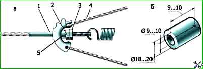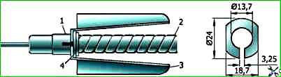 В этом случае для фиксации оболочки троса в кронштейне можно применить шайбу с прорезью, которую следует вставить между кронштейном и втулкой оболочки.