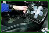 Снятие коробки воздухопритока, кожуха радиатора, гибких тяг привода отопителя