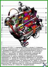 Гидравлический натяжитель установлен в передней части головки блока цилиндров (с правой стороны) под отводящим патрубком рубашки охлаждения