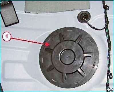 Откидываем вперед подушку заднего сиденья, снимаем крышку 1, рисунок 1, люка бензонасоса.