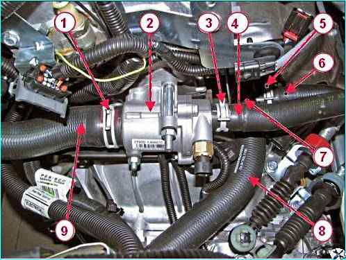 - - шланги 8 и 9 радиатора системы охлаждения;