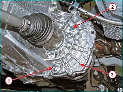 Торцовым ключом на 17 откручиваем пробку 1, рисунок 26, и сливаем масло из коробки 3 передач.