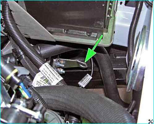 При установке жгутов проводов и отводящего шланга радиатора срезанные хомуты заменить новыми.