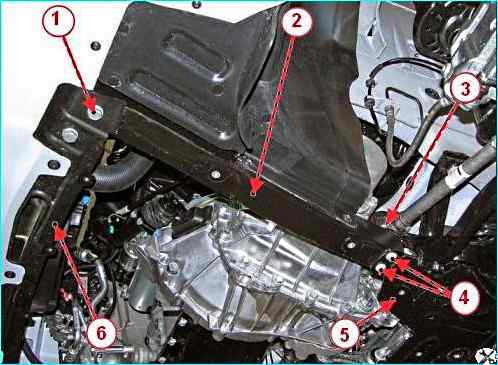 Установить брызговик 2, рисунок 10, двигателя и затянуть тринадцать болтов 1 крепления.