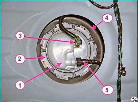 - снимаем крышку 1, рисунок 1, люка бензонасоса.