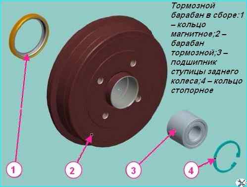 Зафиксировать подшипник в тормозном барабане стопорным кольцом 4, рисунок 3.