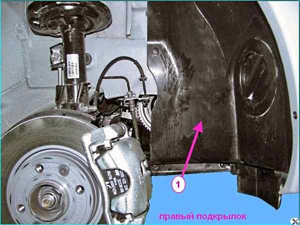 Снимаем грязезащитный щиток 1 (рисунок 1) правого переднего крыла.
