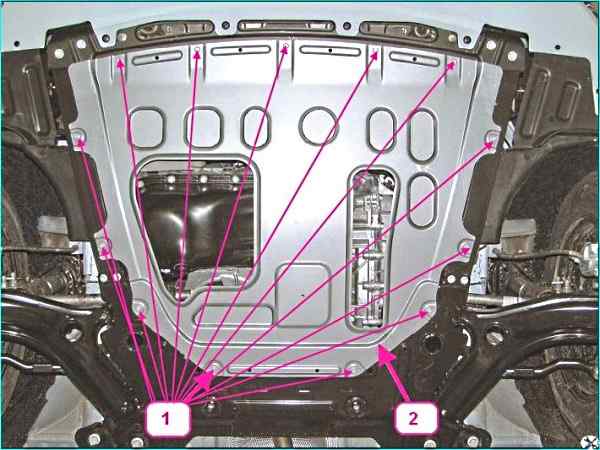 Головкой на 10 отворачиваем тринадцать болтов 1 (рисунок 2) и снимаем защиту двигателя.