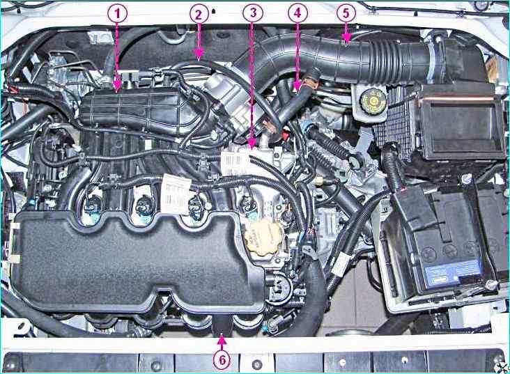 После дроссельного патрубка воздух направляется в каналы модуля впуска и впускной трубы, а затем в головку цилиндров и в цилиндры.