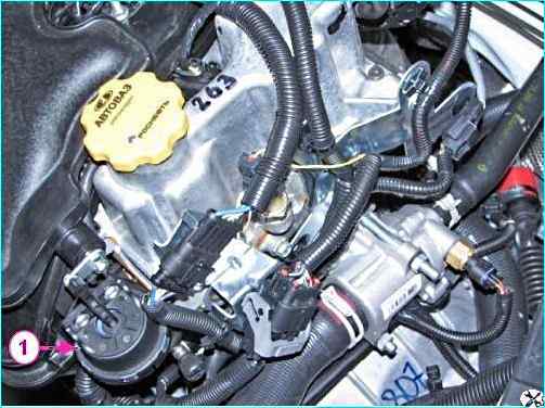 Картерные газы по вытяжному шлангу поступают в маслоотделитель, расположенный в крышке головки цилиндров на двигателе 21129.