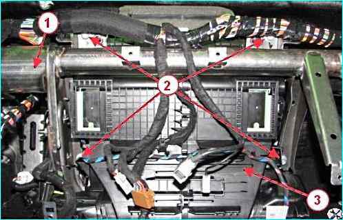 Головкой на 10 откручиваем болты 2, рисунок 2, крепления блока 3 системы отопления, вентиляции и кондиционирования к поперечине 1.