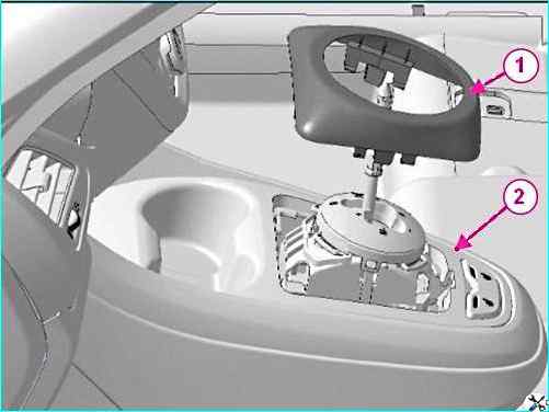 Снимаем накладку 3 привода управления и вставку 4 облицовки туннеля пола.