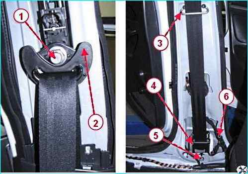 Установку ремней безопасности выполнять в последовательности, обратной снятию.