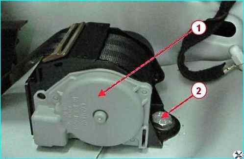 Головкой на 14 откручиваем болт 2, рисунок 13, крепления катушки 1 ремня безопасности правого или левого на панели полки задка, снимаем катушку.