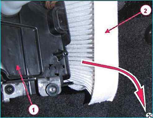 Фильтр салона устанавливается в корпус блока отопления, кондиционирования и вентиляции со стороны переднего пассажира.