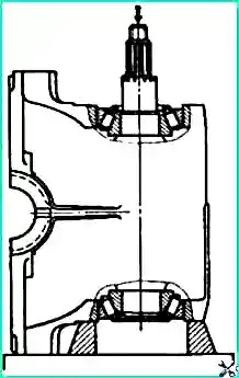 Несоосность расточенного отверстия картера и отверстия ремонтной втулки под подшипник допускается не более 0,05 мм.
