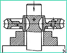 При этом выпрессовывается одно наружное кольцо подшипника. При необходимости может быть выпрессовано другое кольцо с помощью оправки или съемника.