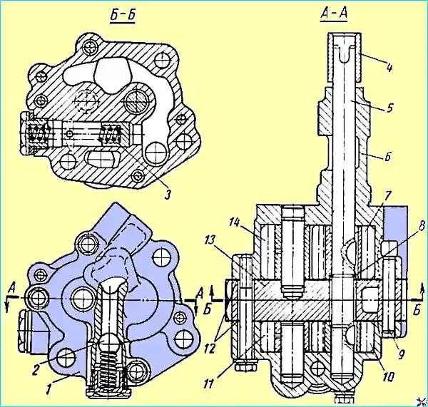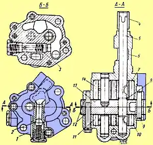 Масляный насос (рис. 1) двухсекционный, шестеренчатый.