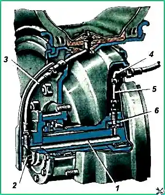 Головка подвода воздуха к шинам установлена внутри колесных цапф полуоси и состоит из двух эластичных манжет 1 (рис. 3) с нажимными пружинами 3, которые обеспечивают герметичность подвижного соединения.