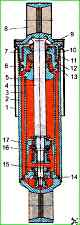 В передней и задней подвеске автомобиля предусмотрены по два гидравлических амортизатора телескопического типа.