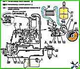 Система питания дизеля, в соответствии с комплектацией дизелей, состоит из: